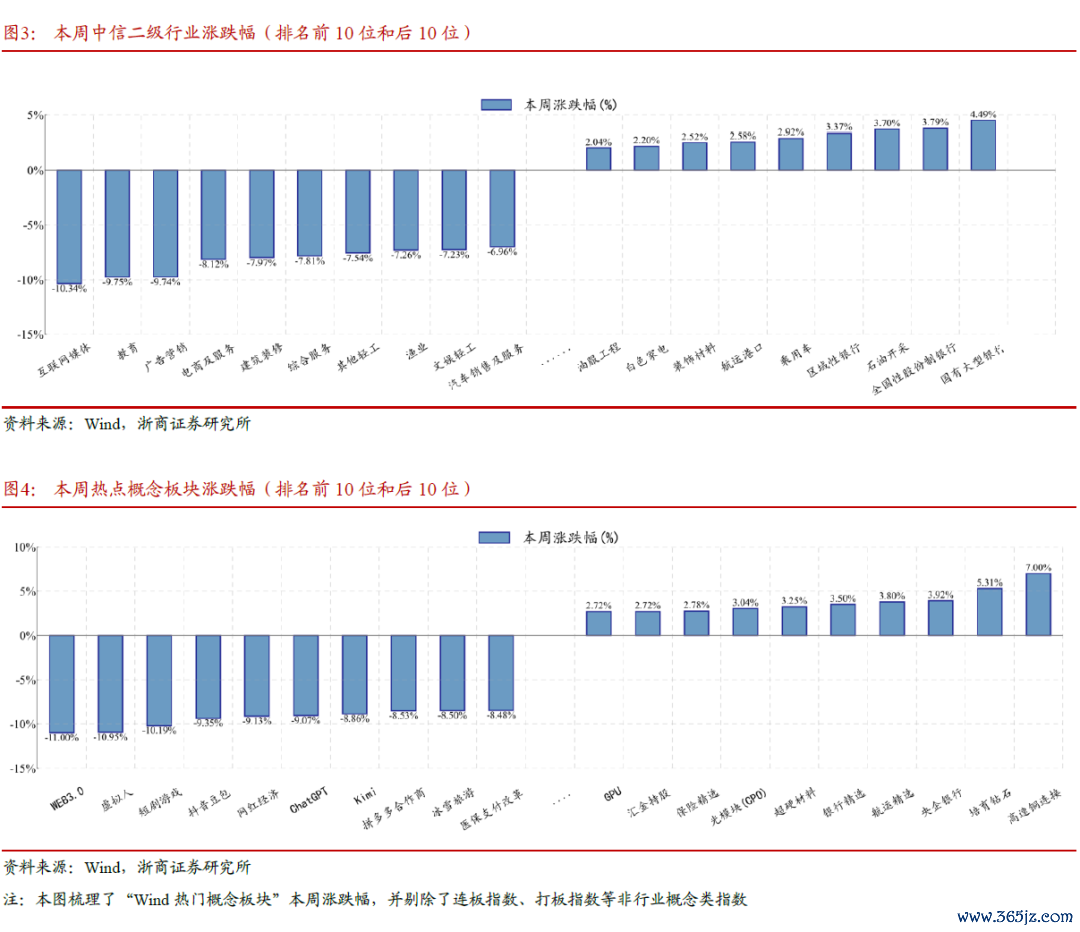 (1)主要指数:主要宽基指数明显分化,上证50涨幅居前。(2)板块观察:红利做盾、金融撑场。(3)市场情绪:沪深成交环比有所下降,股指期货合约大多升水。(4)资金流向:两融余额回落、融资买入占比上升、ETF小幅净流出,证券ETF净流入最多。(5)量化“黑科技”:创业板指估值位于底部,下跌能量模型处于正常水平。