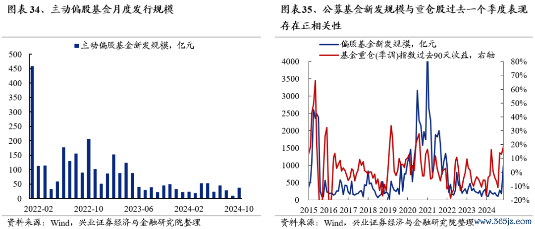 6、私募方面,随着市场回暖,私募基金风险偏好有望逐渐改善,预计明年仓位抬升也将为市场重新贡献增量。根据华润信托的测算,截至2024年10月末,股票私募仓位为56.31%,同样处于历史低位。私募作为绝对收益投资者,仓位的回升也往往滞后出现在市场右侧,参考2019年,私募仓位在市场反弹两个季度后的二季度开始明显回升。